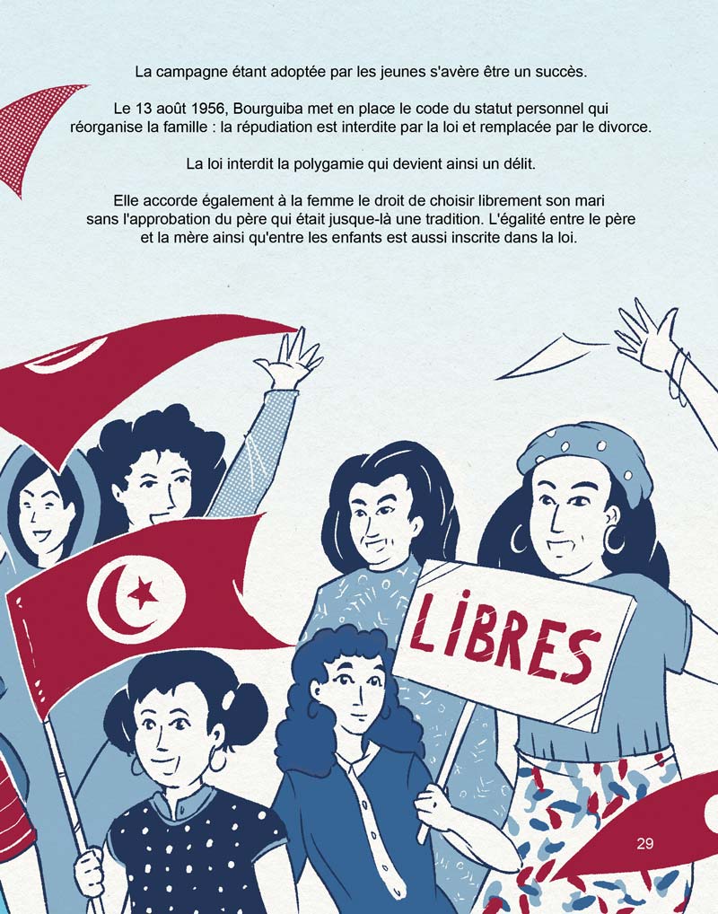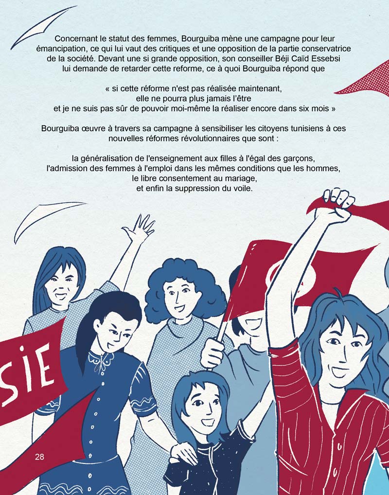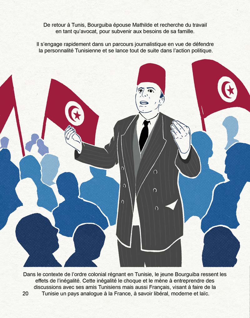 Comme je vous en parlais dans cet article, Ahlem Mahmoud Driss des éditions Céli nous a contactés, avec le camarade Vielo, pour illustrer une biographie tout public de Bourguiba qu’elle a écrit.