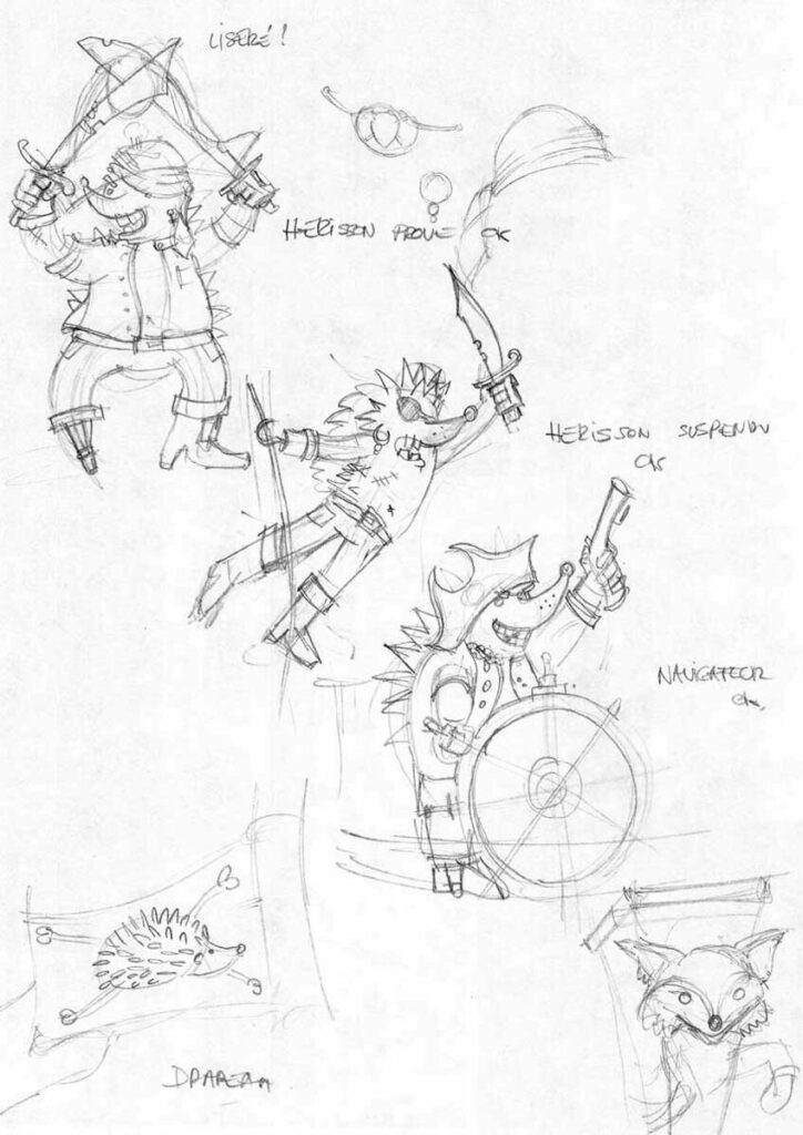 Pour les pirates je les ai dessinés à part pour pouvoir faire plusieurs essais sans abîmer le dessin du bateau :